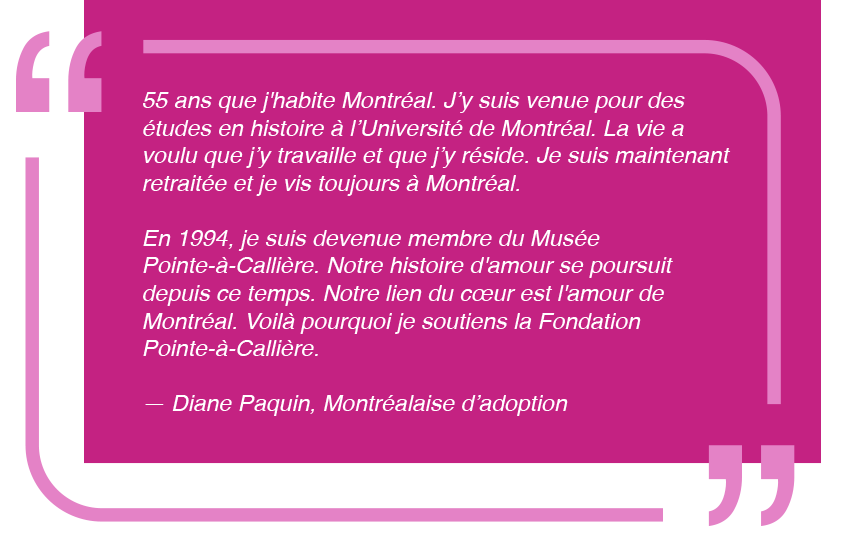 Depuis 1993, la Fondation Pointe-à-Callière mobilise celles et ceux qui croient en la force fédératrice du patrimoine montréalais et qui souhaitent contribuer à son rayonnement.